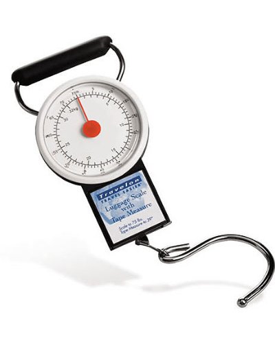 Come in under the limit. Never be charged for overage again. Compact device accurately weighs and measures your luggage prior to baggage check. Scale handles up to 75 lbs. /34kg. Retractable tape measure.